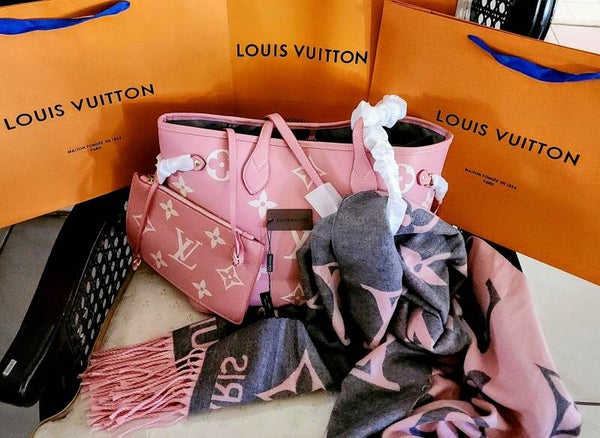 Louis Vuitton Neverfull MM With Cashmere Scarf.
