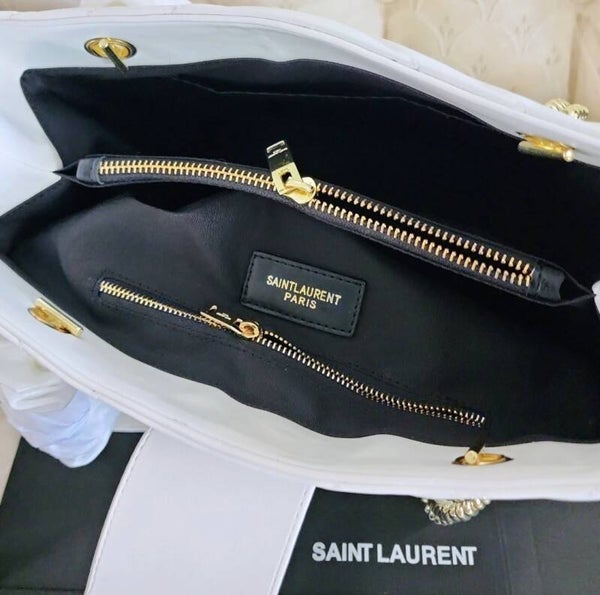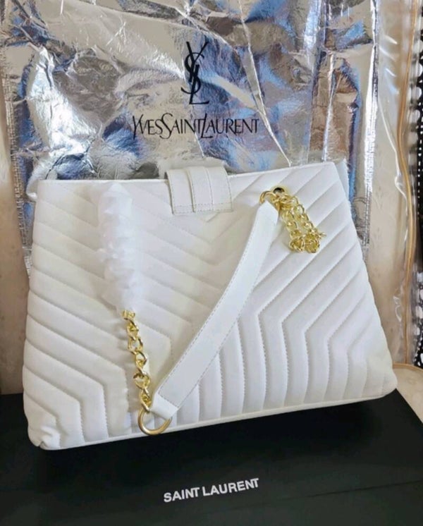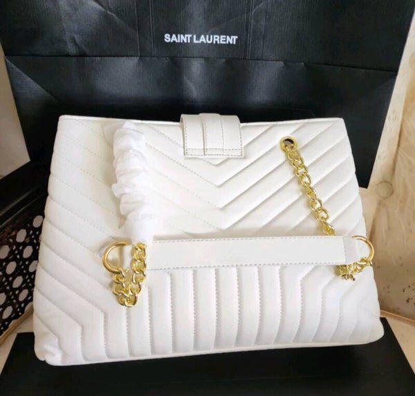 Medium quilted-leather shoulder bag, made in Italy from smooth leather, it's quilted with the house signature chevron stripes and tipped with gold monogram plaque to match the chain strap.