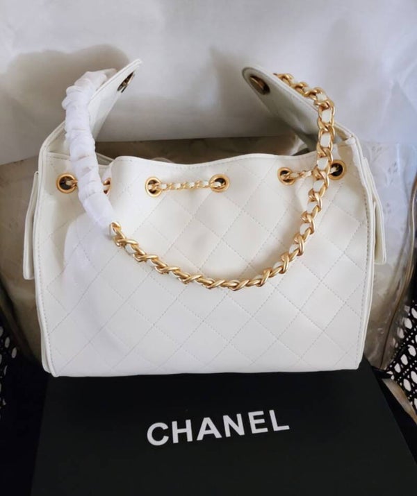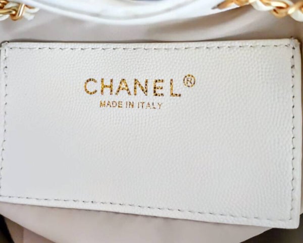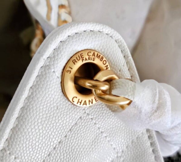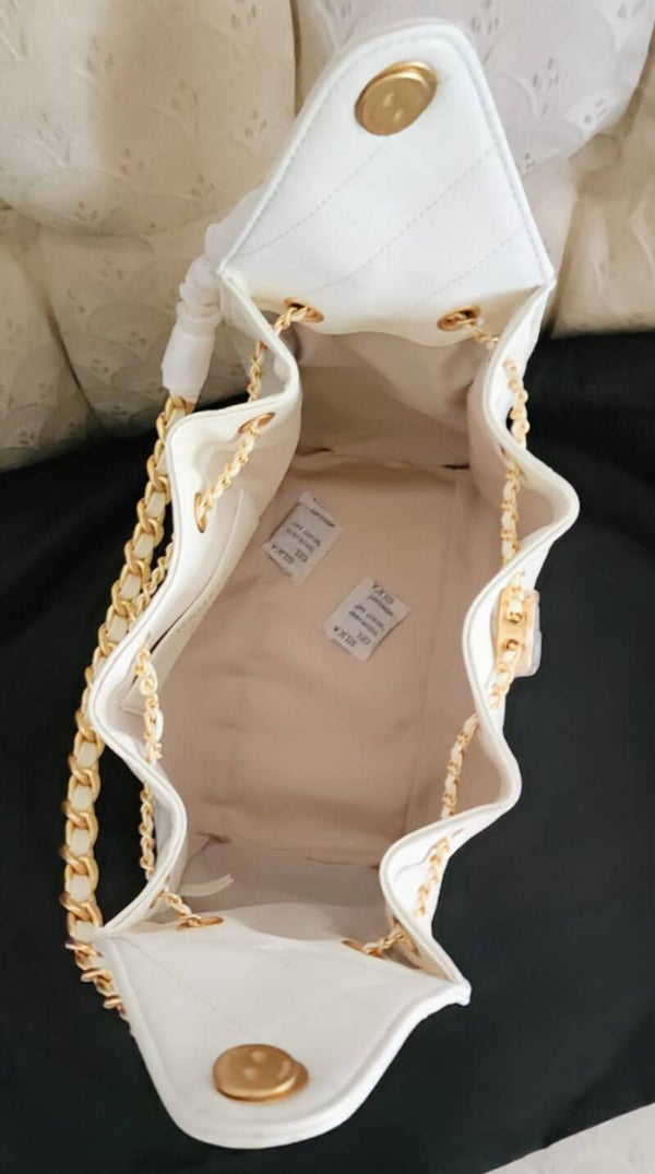 Grained Calfskin and Gold-Tone Metal. Dimensions; 11.8"x10.2"x5.5" inches.