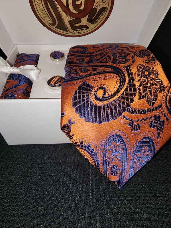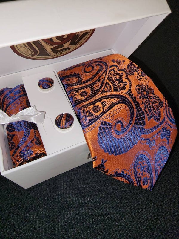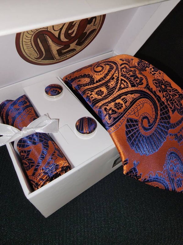 Signature Collection 100% silk paisley necktie handkerchief cufflinks set.