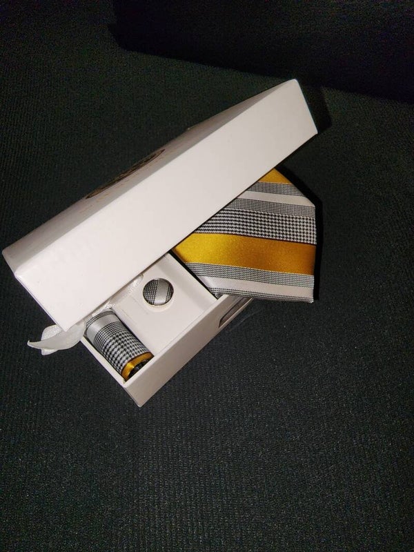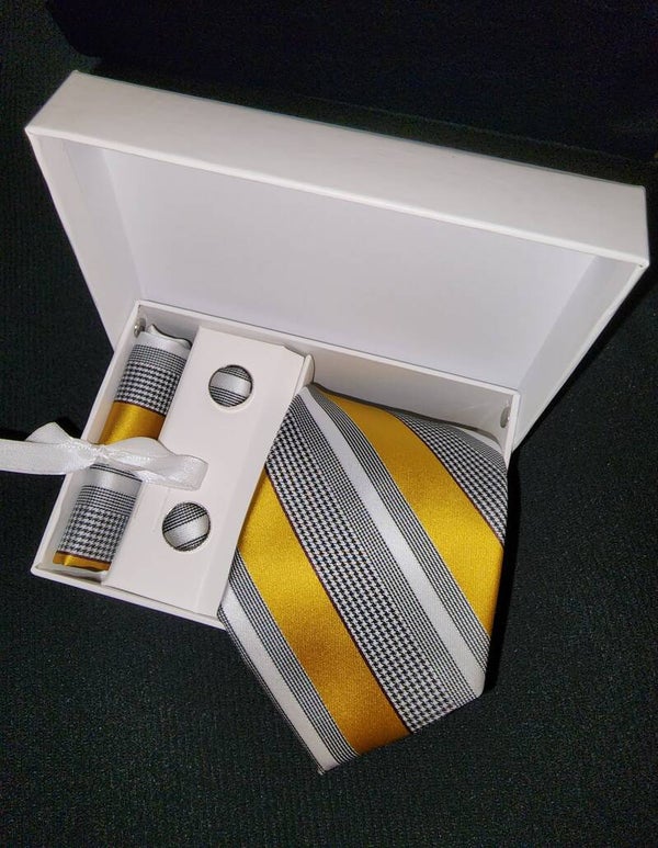Delano Premium Silk Stripe Necktie Pocket Square Cufflinks Set.